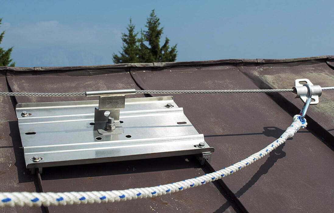 Dispositivo da posizionare sulla fune della linea vita per interrompere lo scorrimento del moschettone.